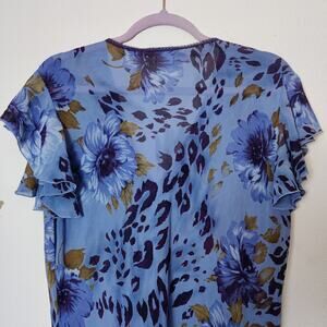 Y2K Sensara Purple Floral Flouncy Flutter Dress Large Forest Fairy Semi Sheer