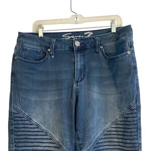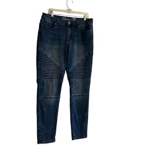 Y2K Seven7 Blue Faded Stacked Moto Bikercore Mid Rise Denim Skinny Jeans Size 14