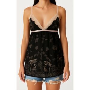 Fairycore Y2K Coquette Babydoll Lace Slip Tank Peacocks Floral Romantic Top