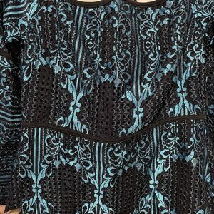 Y2K Sheer Floral Top Lace Print Fairy Witchy Whimsigoth Size Small S Teal Black