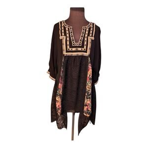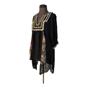 Y2K Sheer Lace Floral Asymmetric Whimsigoth Boho Oversized Tunic Womens Sz M