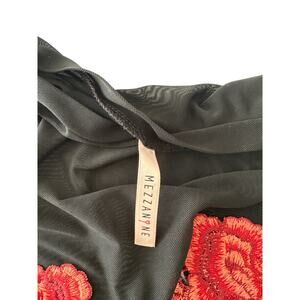 Y2K Sheer Mesh Rose Embroidered Long Sleeve Top M