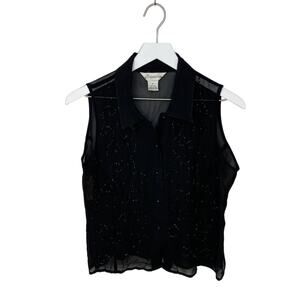 Y2K Sheer Silk Beaded Sleeveless Button Up Blouse - Women's Size M
