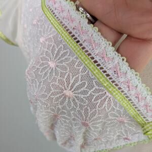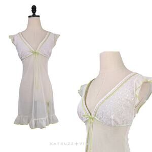 Y2K Sheer Slip Babydoll M Cream Green Vintage Floral Lace Fairy Dainty Nightgown