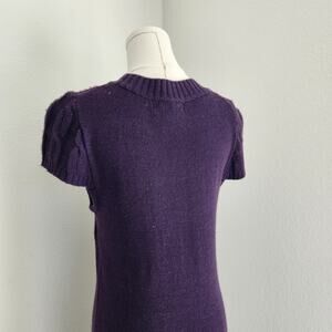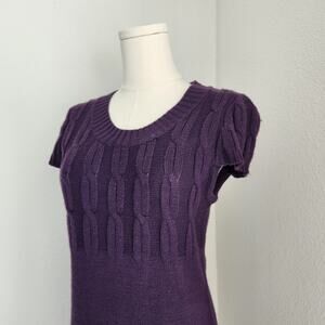 Y2K She's Cool Purple Cable Knit Sweater Dress Short Sleeve Whimsigoth Winter S