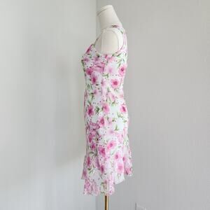 Y2K She’s The 1 Pink Floral Butterfly Bias Cut Ruffle Hem Midi Dress Size 0