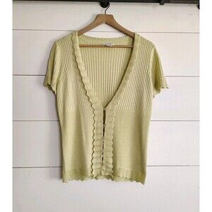 Women's Hannah Short Sleeve Green Cardigan Size Medium. Beautiful detail and super cute buttons.