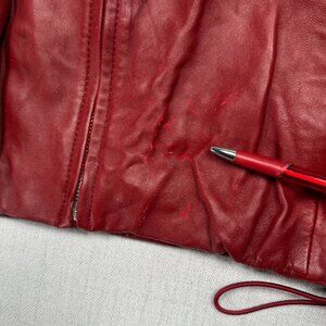 Y2K Siena Studio Leather Jacket Zip Front Red Long Sleeves Lined Size M Medium