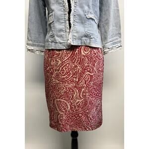 Y2K Silk & Wool Blend Skirt Size 6 Fall Red & Tan Paisley Preppy Career Office