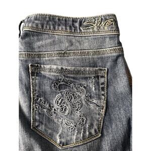 Y2K Silver Jeans 27x33 Bootcut Embroidered Pocket Denim Western Boho Cowgirl