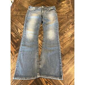 Y2K Silver Jeans Alex Women 31 Thick Stitch Grunge Western Cowgirl Embroidered