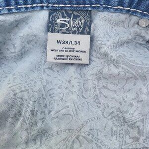 For sale are these Y2K Silver Jeans Mens 38x32 (Fits 38x34) Blue Zac Bootcut Wide Leg Baggy Skater. Jeans are in excellent condition! No holes or stains!