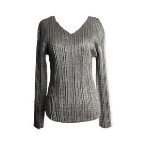 Y2K Silver Shimmer Crinkle Blouse