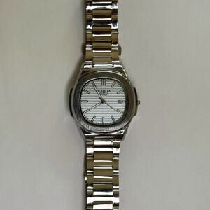 Y2K Silver Square Quartz Watch with Textured Dial Unisex 8.5" New