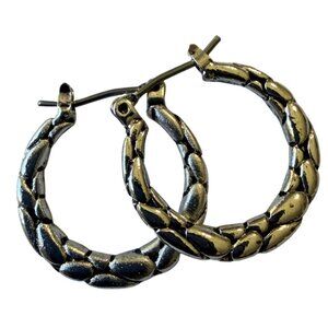 Y2K Silver Tone Textured Pebble Hoop Earrings 3/4" D Nickel Free Hypoallergenic