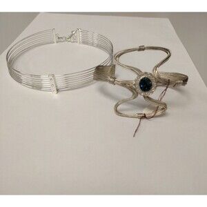 Y2K Silver tone Funky Bangle Bracelet and Choker Necklace