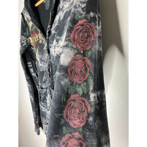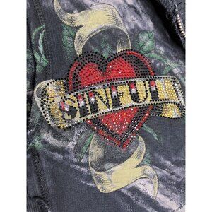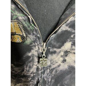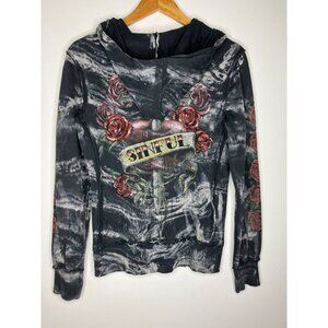Y2K Sinful Affliction Womens Medium Zip Up Hoodie Black Tie Dye Rose Tattoo Hear