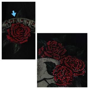 Y2K Sinful Rhinestone Black Ribbed Hooded Sweater Dress Goth Skull Roses Medium