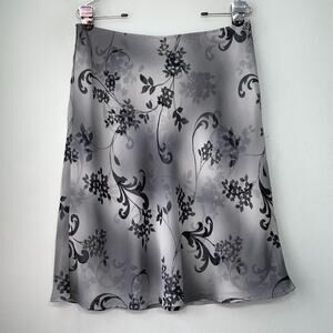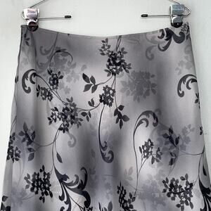 Axcess Liz Claiborne gray and black floral print lined chiffon skirt in Excellent pre-owned condition!