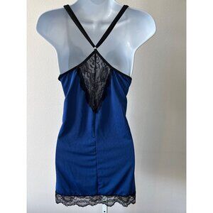 Y2K Slip Dress Sz 2X Blue Lace Bow Bodycon Racerback Going Out Clubwear Party