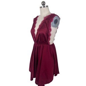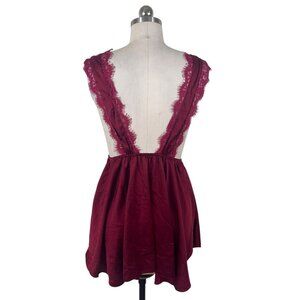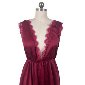 Y2K Slip Dress Womens Medium Red Medium Satin Lace Whimsigoth Vamp Dark Coquette
