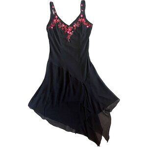 Y2K Slip Midi Dress Womens 12 Embroidered Beaded Fishtail Dark Romantic Fairy Grunge Dark Romantic