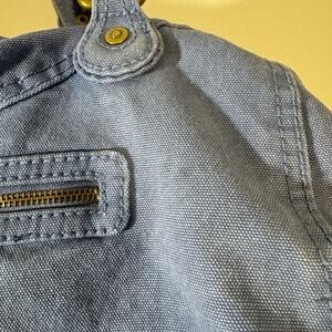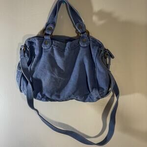 Embrace the grunge and cargo-inspired trends of the late 90s and Y2K era with this versatile slouchy canvas bag. The material is a soft, durable washed blue canvas/cotton twill that perfectly mimics the look of faded, well-worn denim.
