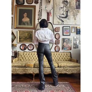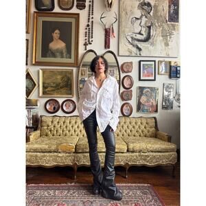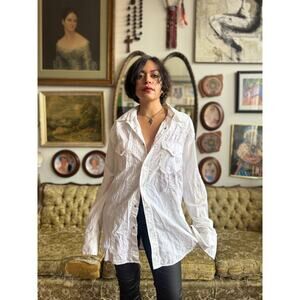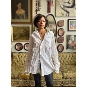 Y2K White Snap Button Double Breast Pocket Embroidered Long Sleeve Top Size Mens
