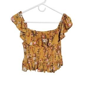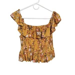 Y2K Sofi Angel Women's size L Smocked Ruffle Grungecore Dainty Feminine Top Floral Beachy Resort