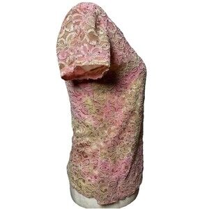 Elevate your Y2K wardrobe with this dreamy vintage-inspired blouse in soft shades of pink, blush, and beige. Featuring a delicate lace overlay with sparkling sequin accents, this top is perfect for fairycore, soft girl, and femme aesthetics. The intricate floral lace design adds texture and dimension, making it a standout piece for layering or wearing on its own.