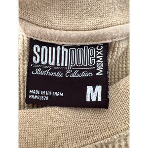 This Southpole men's tan long sleeve shirt is crafted with a comfortable waffle-knit texture and features a cotton-polyester blend. Its medium size offers a relaxed and versatile fit.