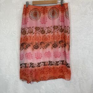 Y2K Southwestern Midi Skirt MDL New York Floral Pink Orange Stretch L
