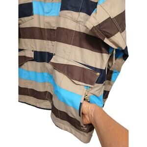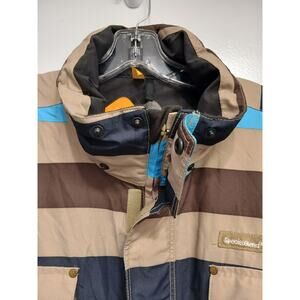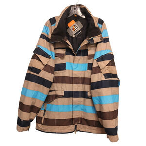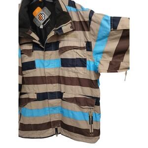 Y2K Special Blend Ski Snowboard Jacket Men XL Aqua Tan Winter Sport Coat Striped