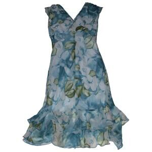 Y2K Speechless Blue Midi Double Lined Floral Dress With Ruffles Size 3