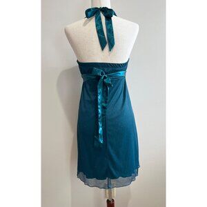 Y2K Speechless Halter Formal Mini Dress Juniors M Teal Sparkle Satin Fairy