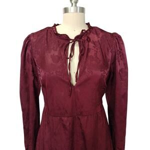 Y2K Speechless Satin Dress Size L Burgundy Damask Whimsygoth Tie Neck Romantic