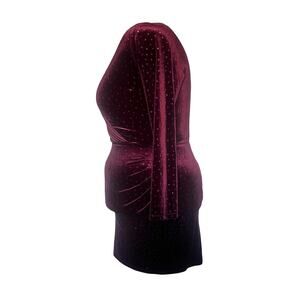 Velvet, Whimsigoth, Glitter, Faux Wrap, burgundy velvet, velvet bodycon, Speechless dress, wrap dress, metallic dot dress, party dress, cocktail dress, long sleeve velvet, vampy dress, holiday dress, coquette evening dress, Y2K clubwear, mob wife glam