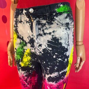 Y2K Splatter Paint Jeans – Aphrodite USA – Neon Festival Denim – Size 25