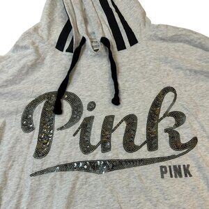 Y2K Sporty Glitter Glam Victoria’s Secret PINK Cozy Bling Campus Pullover Crew Neck Hoodie - Heather Gray Oversized Sparkle Logo Sweatshirt Medium