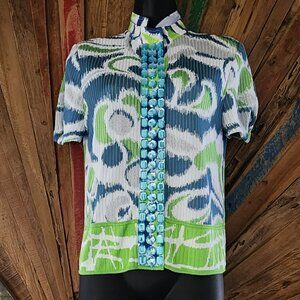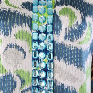 Y2K St. John SoCa blue/green rhinestone Intarsia/jacquard viscose/metallic cardigan/Sweater Sz P or S