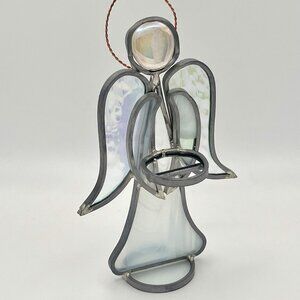 Y2K Stained Glass Angel Tealight Candle Holder Iridescent Glass Signed Handmade