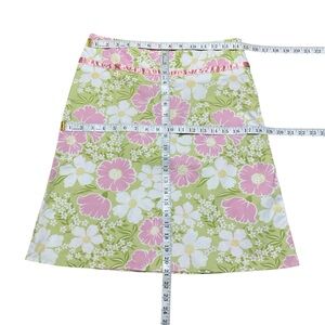 Y2K Star City Floral Knee Length Skirt Women’s 5 Green Pink A Line Casual