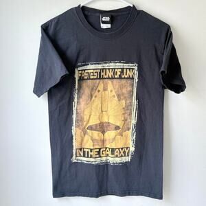 Black Y2K StarWars “Fastest Hunk Of Junk In The Galaxy” Han Solo Millennium Falcon Graphic Tee