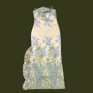 Y2K Strapless Floral Print Maxi Dress Ruffle Slit Cottagecore Boho Festival Sz L