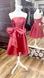 red satin mini dress, strapless bow dress, cocktail party outfit, formal red dress, fit and flare mini, valentines date night look, modern princess style, homecoming dress, holiday formalwear, sweetheart silhouette, romantic red bow dress, luxe satin occasionwear