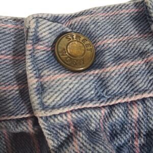 Y2K Street Worn Pink on Blue Pinstripe Denim Mini Skirt Size S 90s