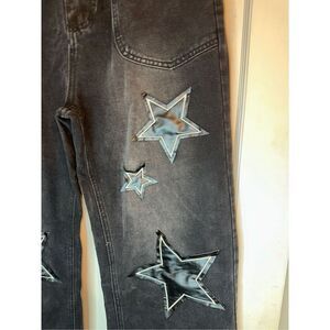 Y2K Streetwear Printed Star Patchwork Baggy Jeans wide legged size Large L 8 -
