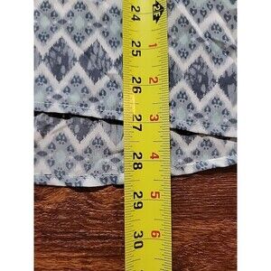 Introducing a stunning Y2K Studio Y Blouse in a beautiful blue color. This blouse features a unique geometric pattern, a V-neckline, and long bell sleeves with ruffled accents. The pullover closure makes it easy to wear, and it is suitable for a variety of occasions such as travel, parties, and casual outings. The blouse is made of lightweight and breathable polyester material, making it perfect for all seasons. It is lined and sheer, adding a touch of elegance to the blouse. The blouse is machine washable, making it easy to care for. This vintage blouse is a must-have for any 90s enthusiast, and it is available in a relaxed fit and regular size type.