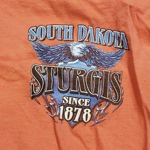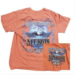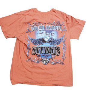 Y2K Sturgis Biker Mount Rushmore South Dakota Coral Pink Graphic T-shirt Large.