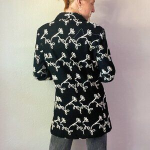 Y2K Style Focus by Shani Floral Embroidered Wool Blend Black Coat